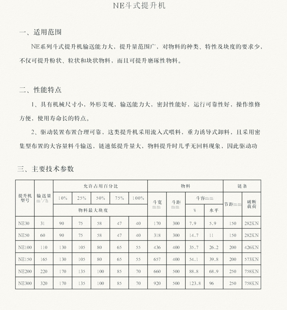 一、NE斗式提升機的特點